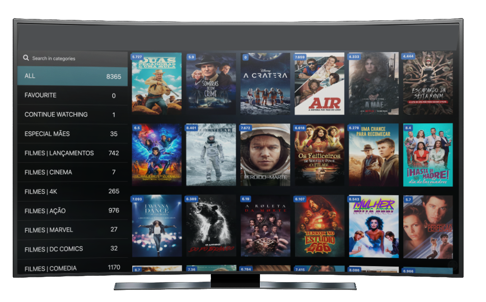 Todos os canais de TV por assinatura disponíveis em sua TV além de centenas de filmes e séries.